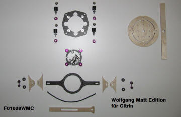 between the mounting parts. 4x M4x8 Titanium Button Head Screws 4x M4x15 Titanium CSK Screws Weight: about 16.5 gr. incl. fasteners |