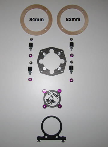 Verstellbare Aufhängung für Q80 S/XS/PSD Diese Aufhängung lässt Feineinstellung im Bereich von 0,1mm zu. Erreicht wird dies durch Distanzscheiben die zwischen den Aufhängungsteilen montiert werden. Lieferumfang: fertig zusammengebaute und verklebte Carbonplatte mit Aluteilen und Titanschrauben. Distanzscheibenset mit 0,1mm; 0,2mm; 0,25mm und 0,5mm. Die Distanzscheiben können auch für die Einstellung des Spinnerspalts verwendet werden |