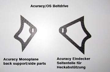 Seitenteile für hintere Abstützung für Accuracy Mono Seitenteile für hintere Abstützung zum Einbau des OS-Belt-Drive in einen Accuracy Eindecker Material: 1,5mm CFK |