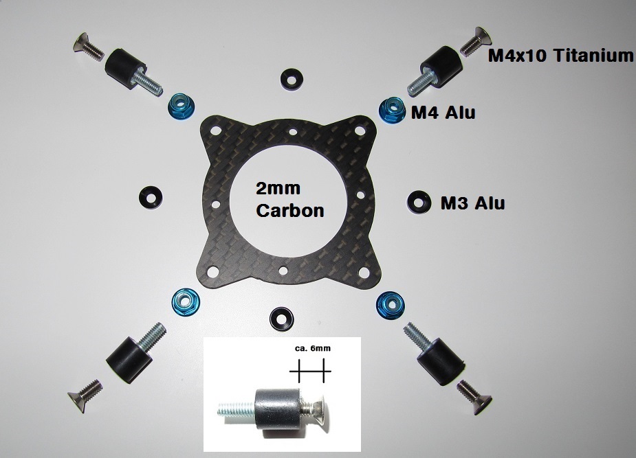 Motorspant für Softmount Ersetzt die Aluminium Platte und schafft die Möglichkeit eine schwingungsgedämpften Aufhängung Material: 2mm CFK