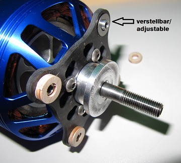 Q80 S/XS/PSD Rear Support adjustable, fuselage width: ~12-16cm built in offset for about 3° side thrust Alu bolt with O-Ring must be glued with Uhu Enfest (300) |